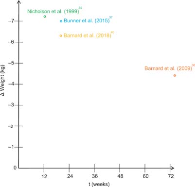 FIG 3. Weight loss with a low-fat, vegan diet in patients suffering from type-2 diabetes. A review of the current studies.