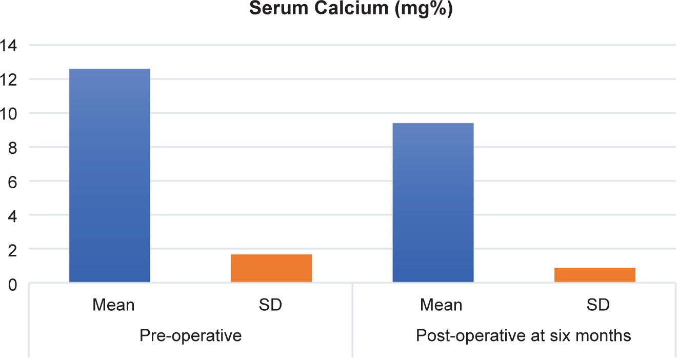 FIG 2. Serum calcium pre-operation and 6 months after parathyroidectomy.