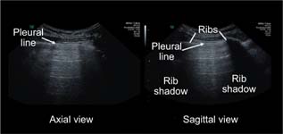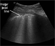 Pleural line (Figure 3): in a normal lung, only the pleural line can be seen. This appears as a hyperechoic and sliding line, moving forward and backward with ventilation. This is the result of the movement of the visceral pleura against the parietal pleura during the respiratory cycle.