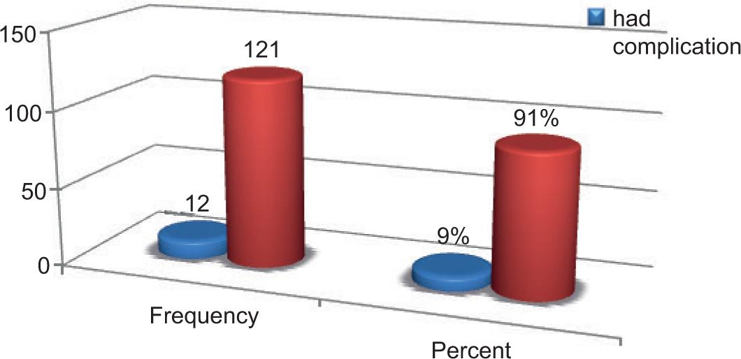 Complications were seen in 9% of the cauterized patients (ulcerations 8.3% or infections 0.7% at the sites of cautery). The same complications were reported in different percentages in other studies like the one conducted in Saudi Arabia and Sudan. The difference in percentage of patients developing complications may be attributed to the method of cautery and also because the majority of the patients in our study were seeking medical care before cautery and within a 6-day period after cautery.25